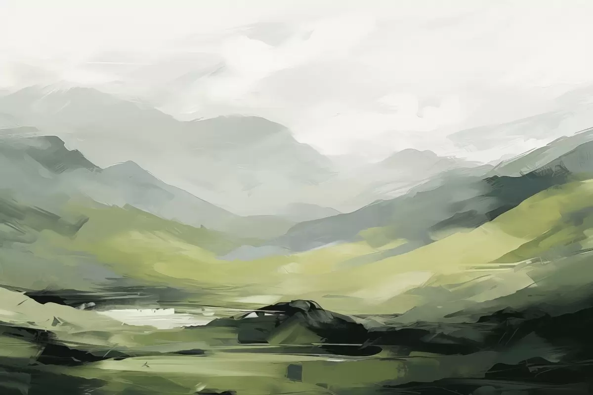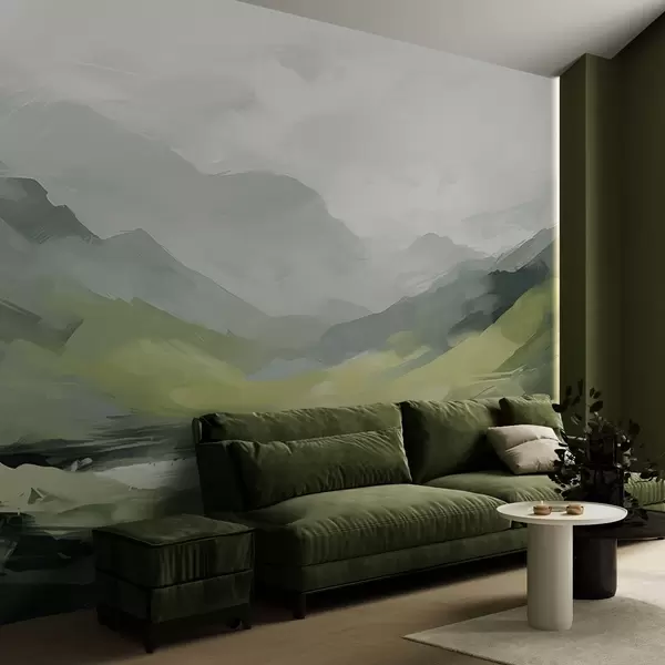 Фотошпалери Абстрактний гірський пейзаж у відтінках зеленого w04447