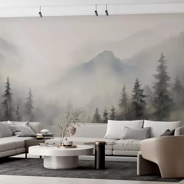 Шпалери Ліс у тумані на тлі гір w04493
