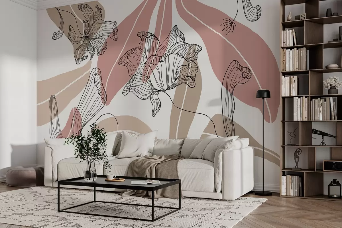 Фотошпалери абстрактні листя і квіти в пудрових і бежевих тонах w04499