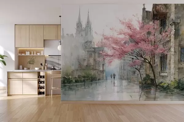 Фотошпалери міський пейзаж у стилі акварелі w04500