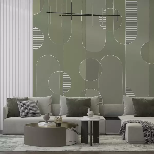 Фотошпалери Геометрична абстракція з приглушеними зеленими тонами w04523