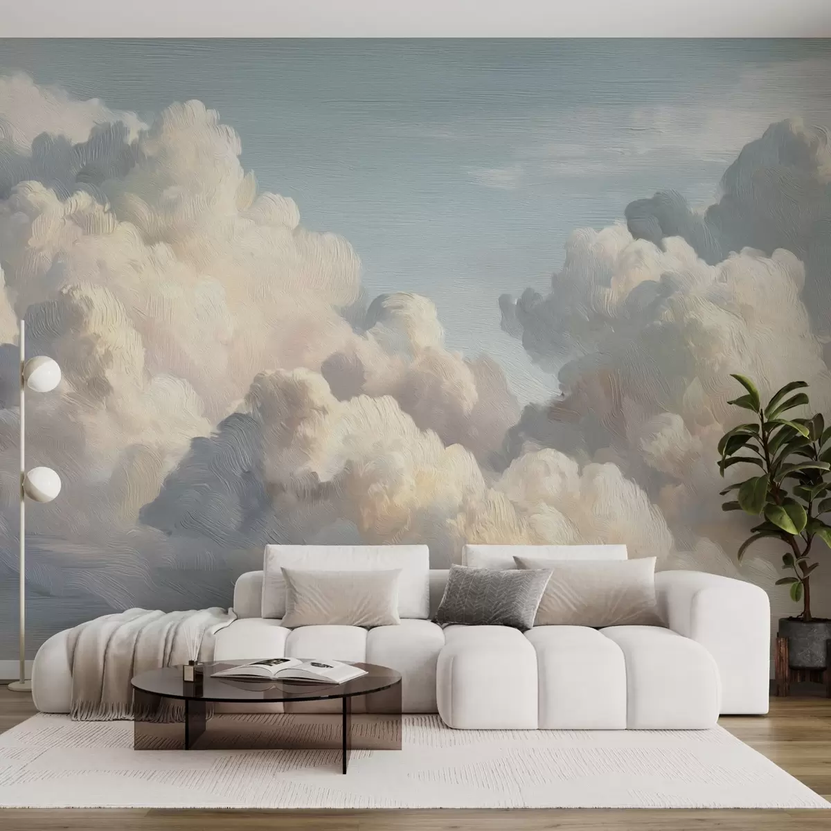 Фотошпалери Хмари на м'якому блакитному небі з легкою текстурою w04550v2