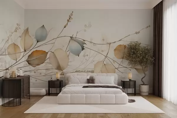 Фотошпалери Ніжні гілки з листям бежевих відтінків w04579