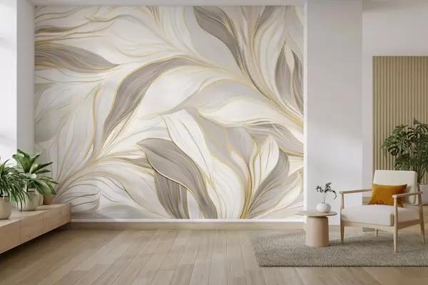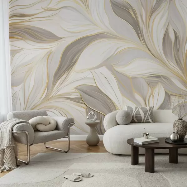 Фотошпалери Листя з плавними вигинами в світло-бежево-сірих тонах w04609