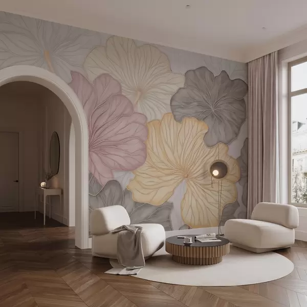 Фотошпалери Велике пастельне листя з тонким прожилковим малюнком w04612