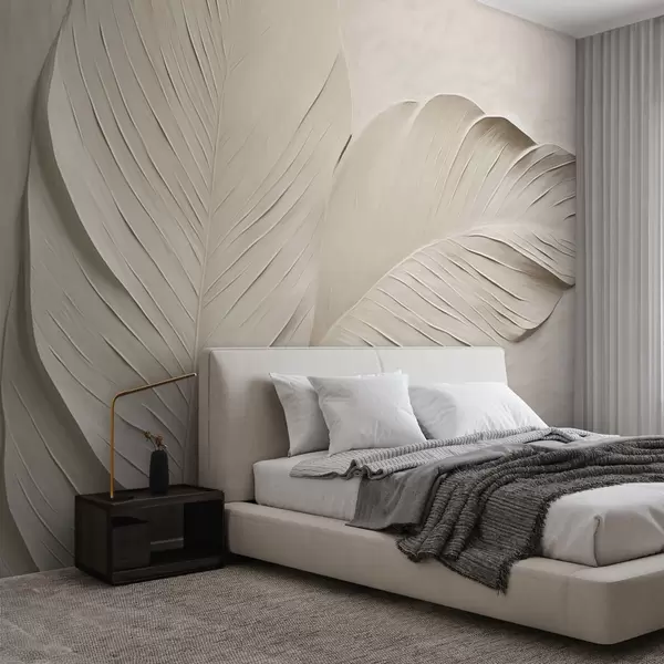Фотошпалери Рельєфні бежеві листя з м'якими тінями w04614