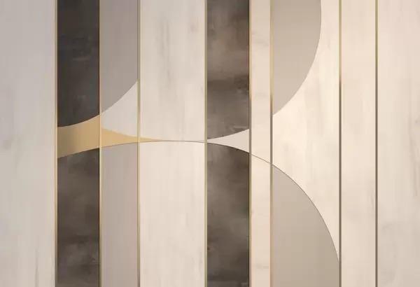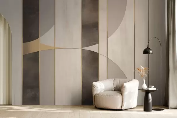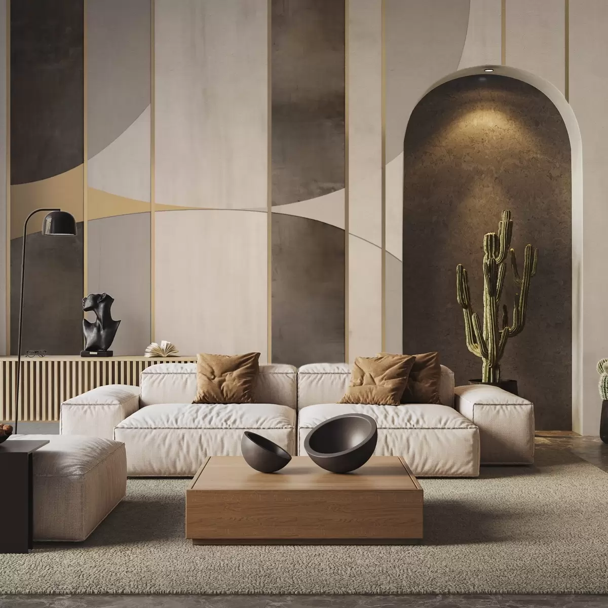 Фотошпалери Геометричні панелі з дугами та акцентами кольору шампань w04616