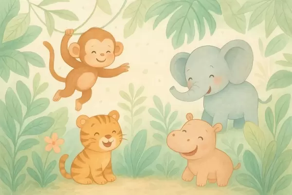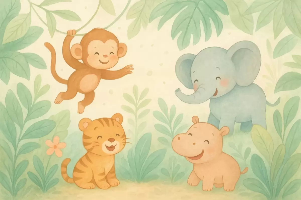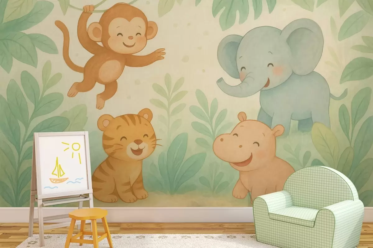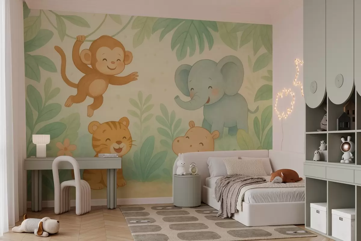 Фотошпалери милі дитинчата тварин у джунглях w04622