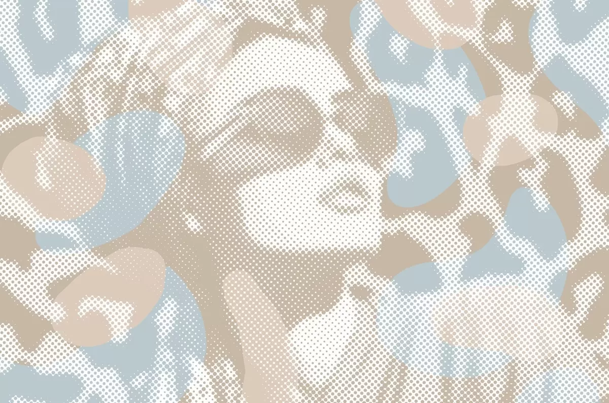 Фотошпалери портрет жінки на леопардовому тлі в крапчастому стилі в бежевих і блакитних тонах w04630