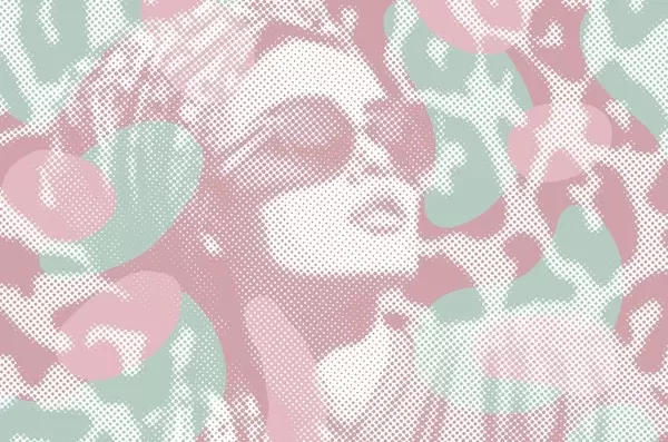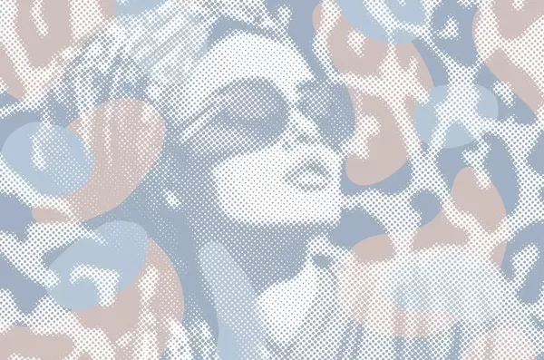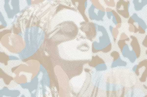 Фотошпалери портрет жінки на леопардовому тлі в крапчастому стилі в блакитних тонах w04630v1