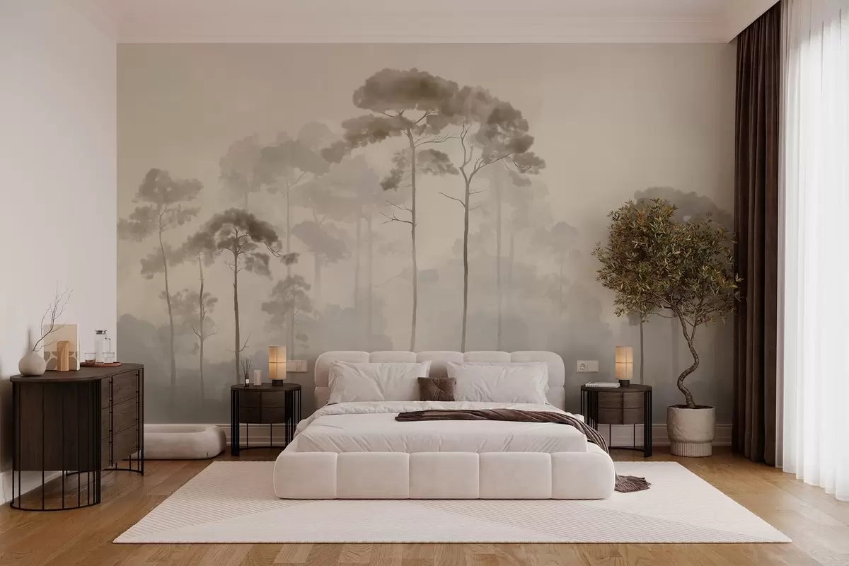 Фотошпалери світлі силуети сосен у стилі акварелі w04634