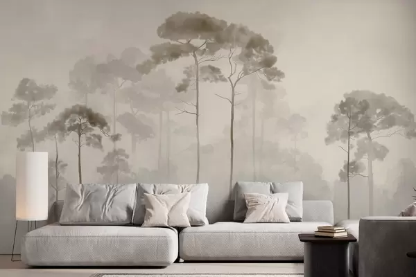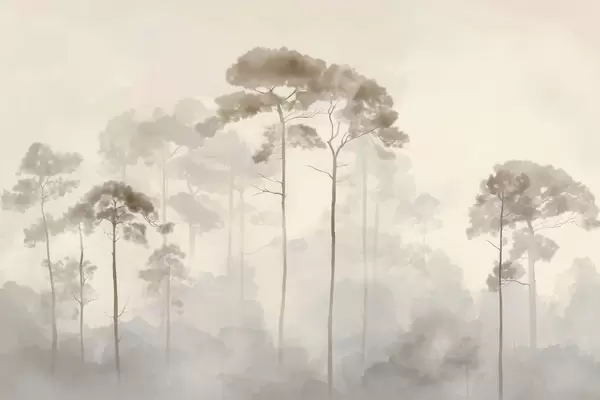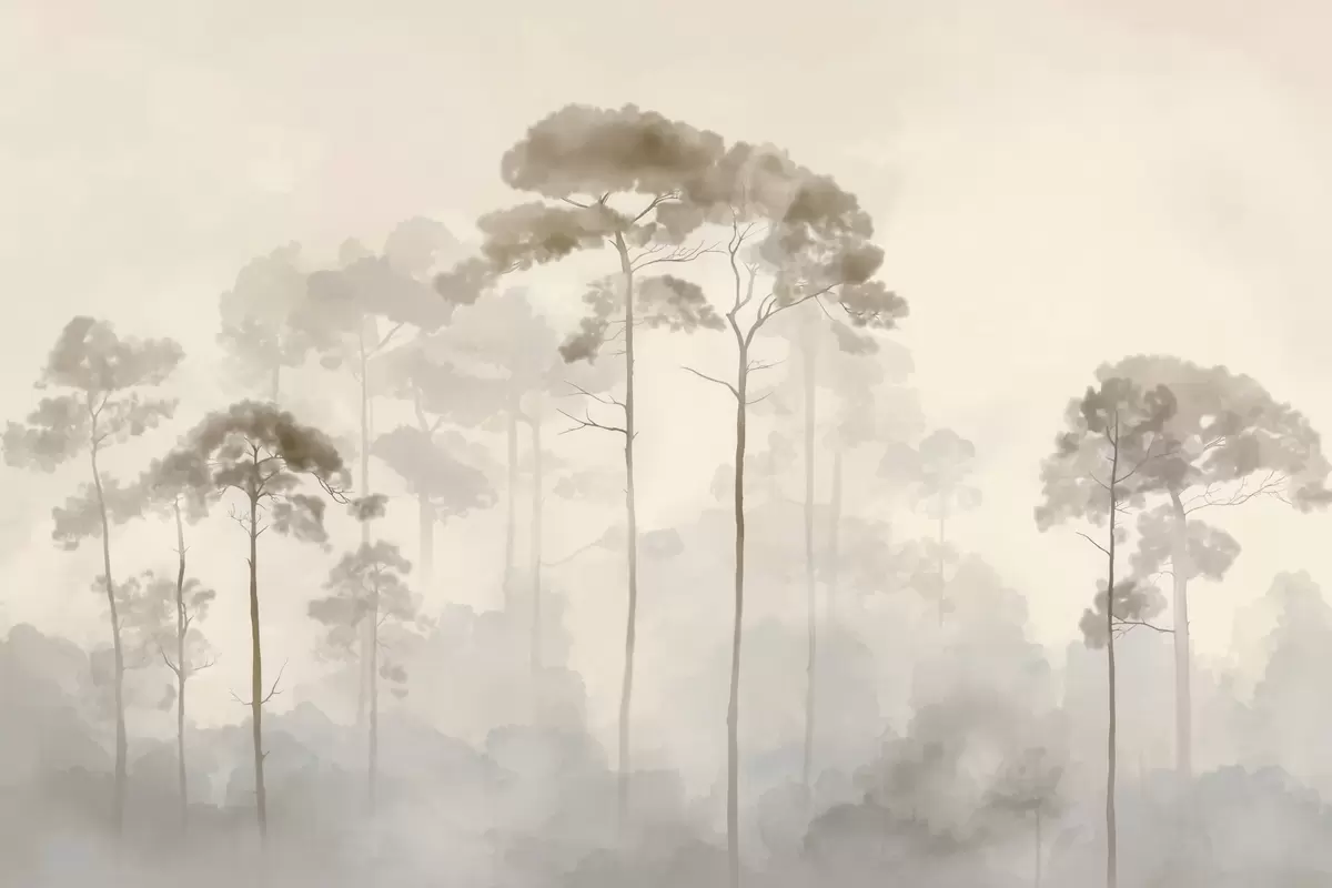 Фотошпалери світлі силуети сосен у стилі акварелі w04634
