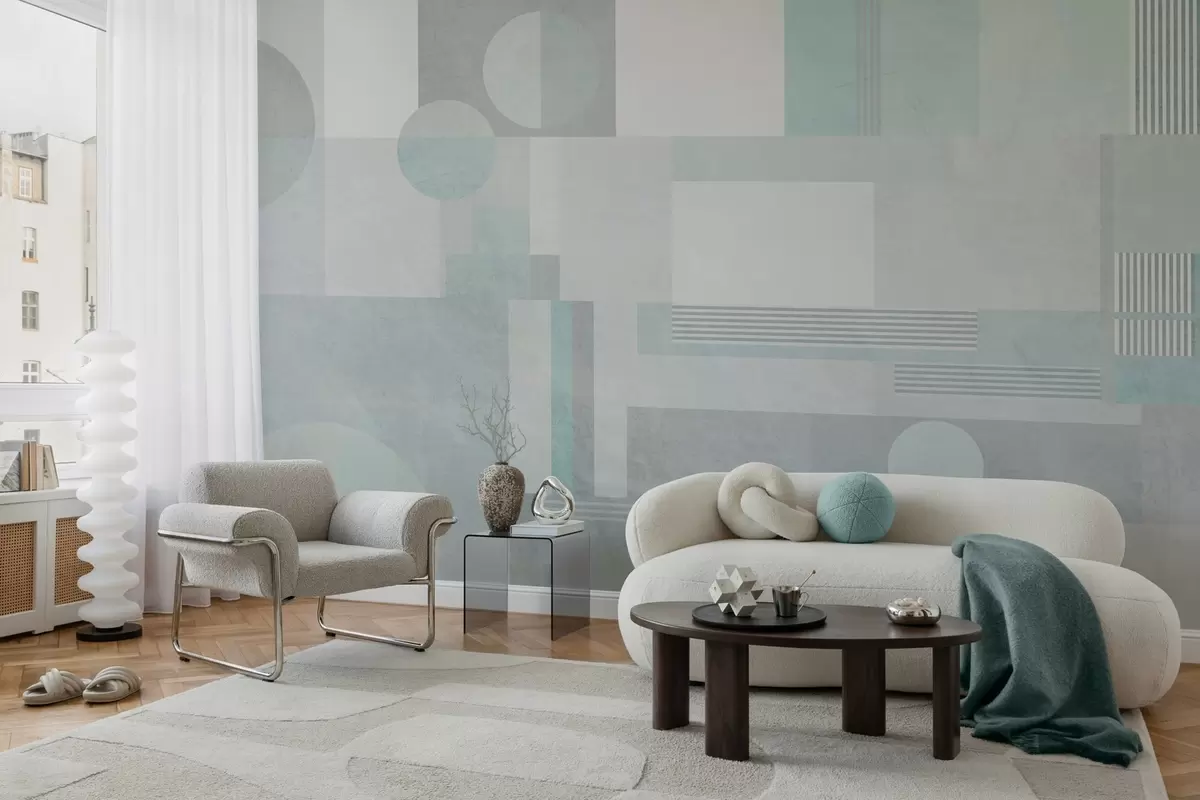Фотошпалери абстрактна геометрія в сіро-зелених тонах w04635v3