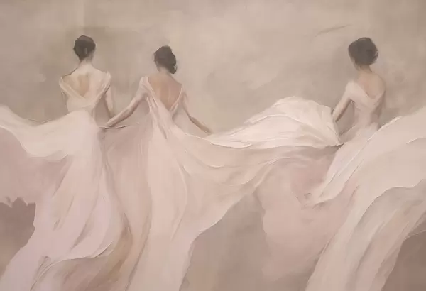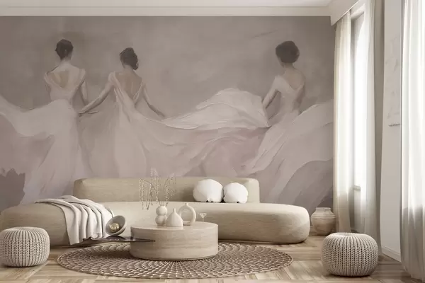Шпалери Три жінки в рожевих сукнях, струмлива тканина, м'якість w04709