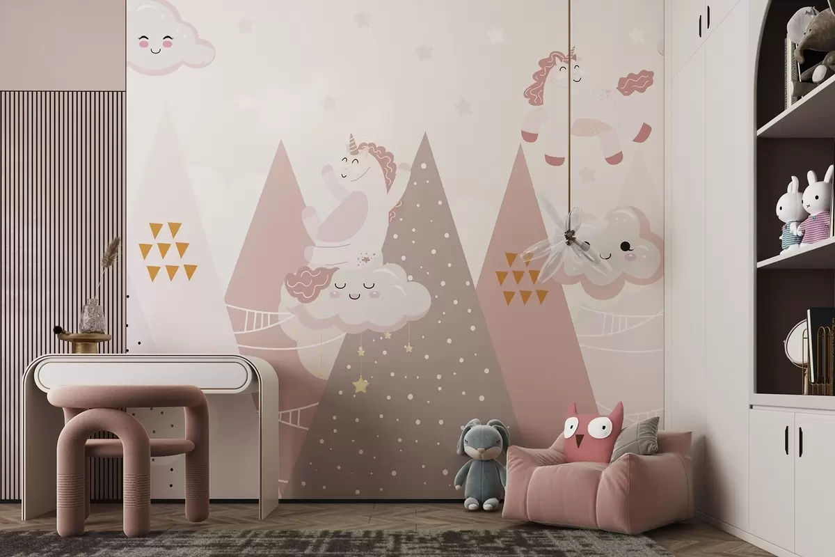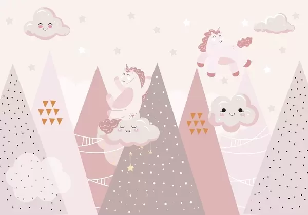 Фотошпалери Поні в горах з хмарами w04741