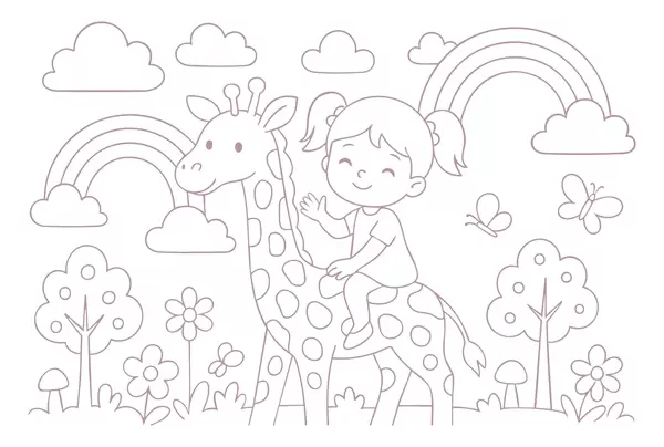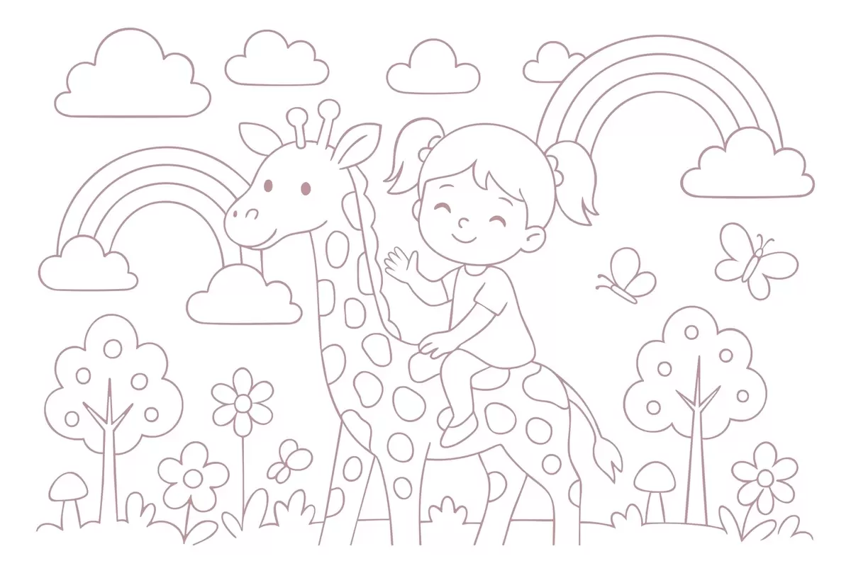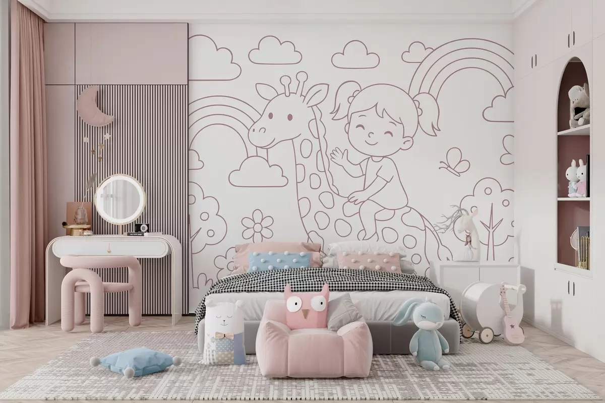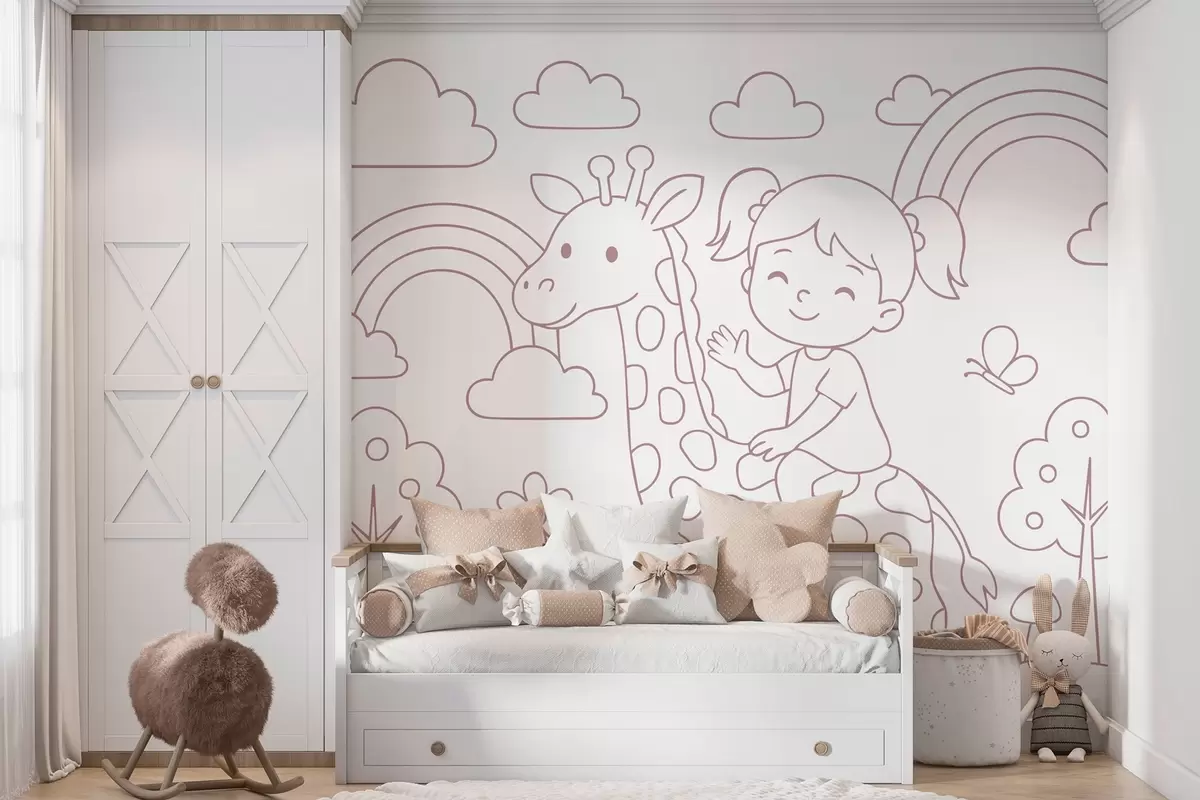 Фотошпалери порошкова картина дівчинки на жирафі в стилі дитячої розмальовки w04753v1