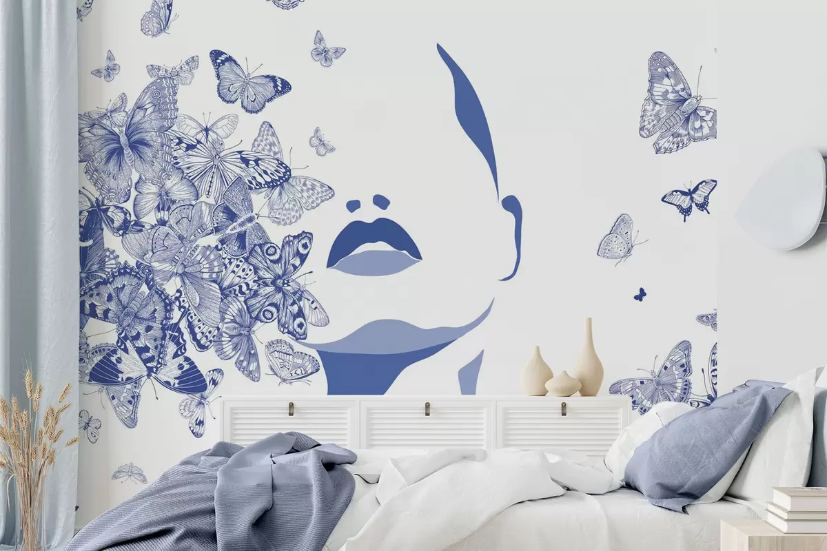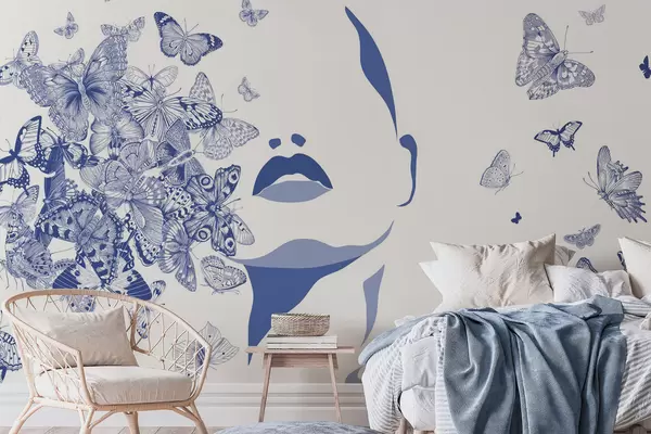 Фотошпалери Силует обличчя серед метеликів w04778v1