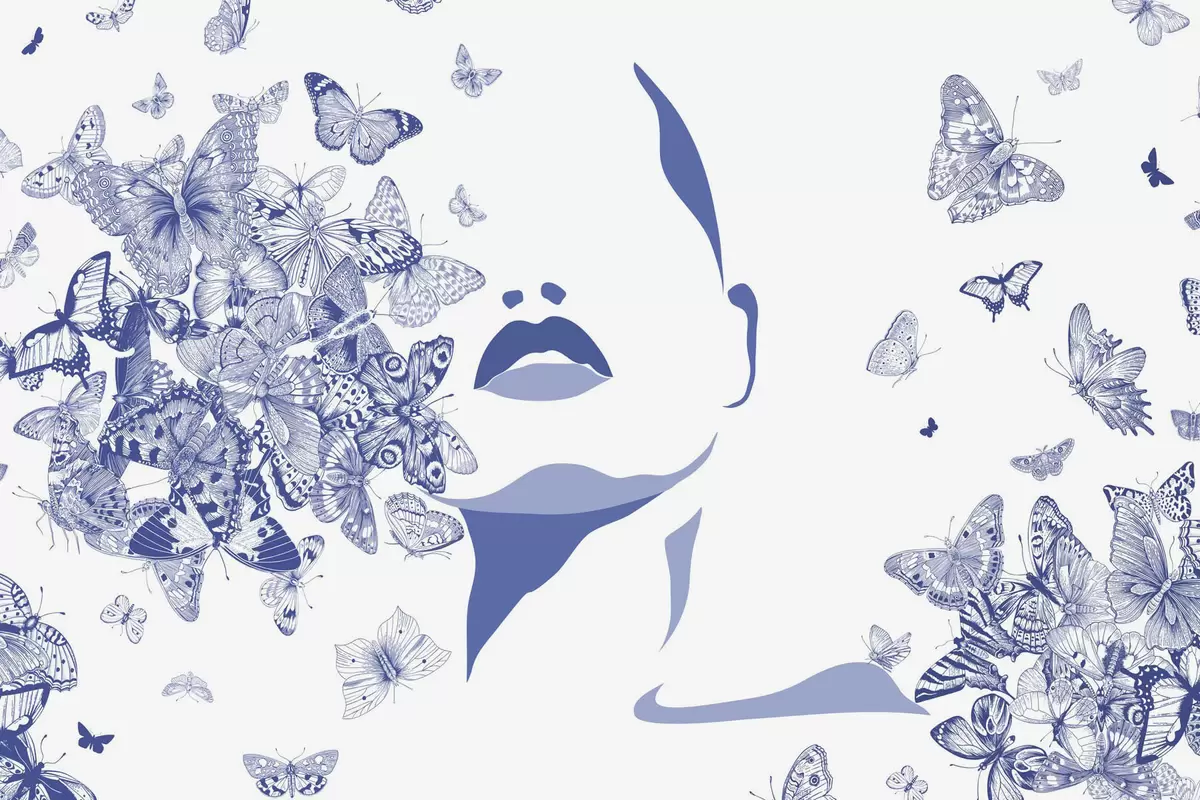 Фотошпалери Силует обличчя серед метеликів w04778v1