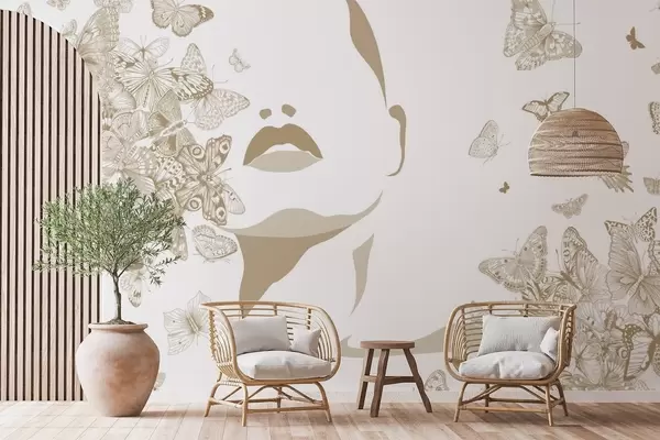 Фотошпалери Силует обличчя серед метеликів w04778v2