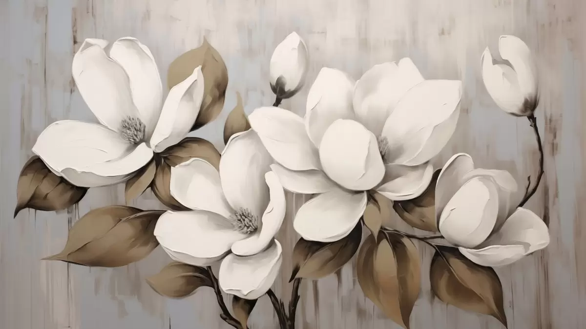 Фотошпалери Великі квіти магнолії з сіро-коричневим листям на матовому тлі w04785