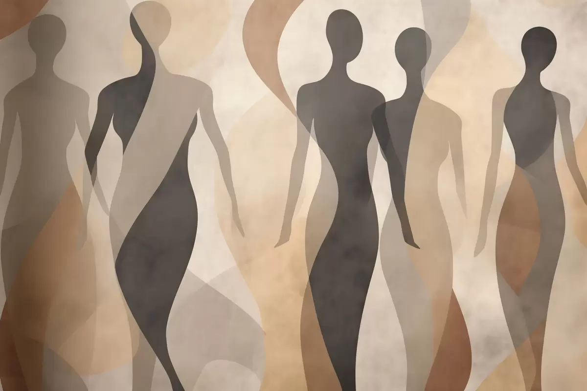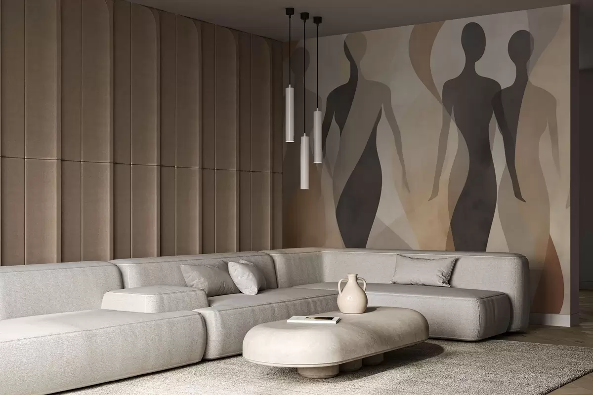 Фотошпалери Силуети фігур і м'які хвилі в теплих бежево-сірих тонах w04787