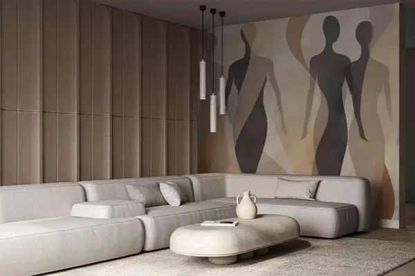 Фотошпалери Силуети фігур і м'які хвилі в теплих бежево-сірих тонах w04787