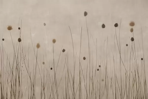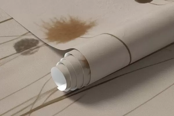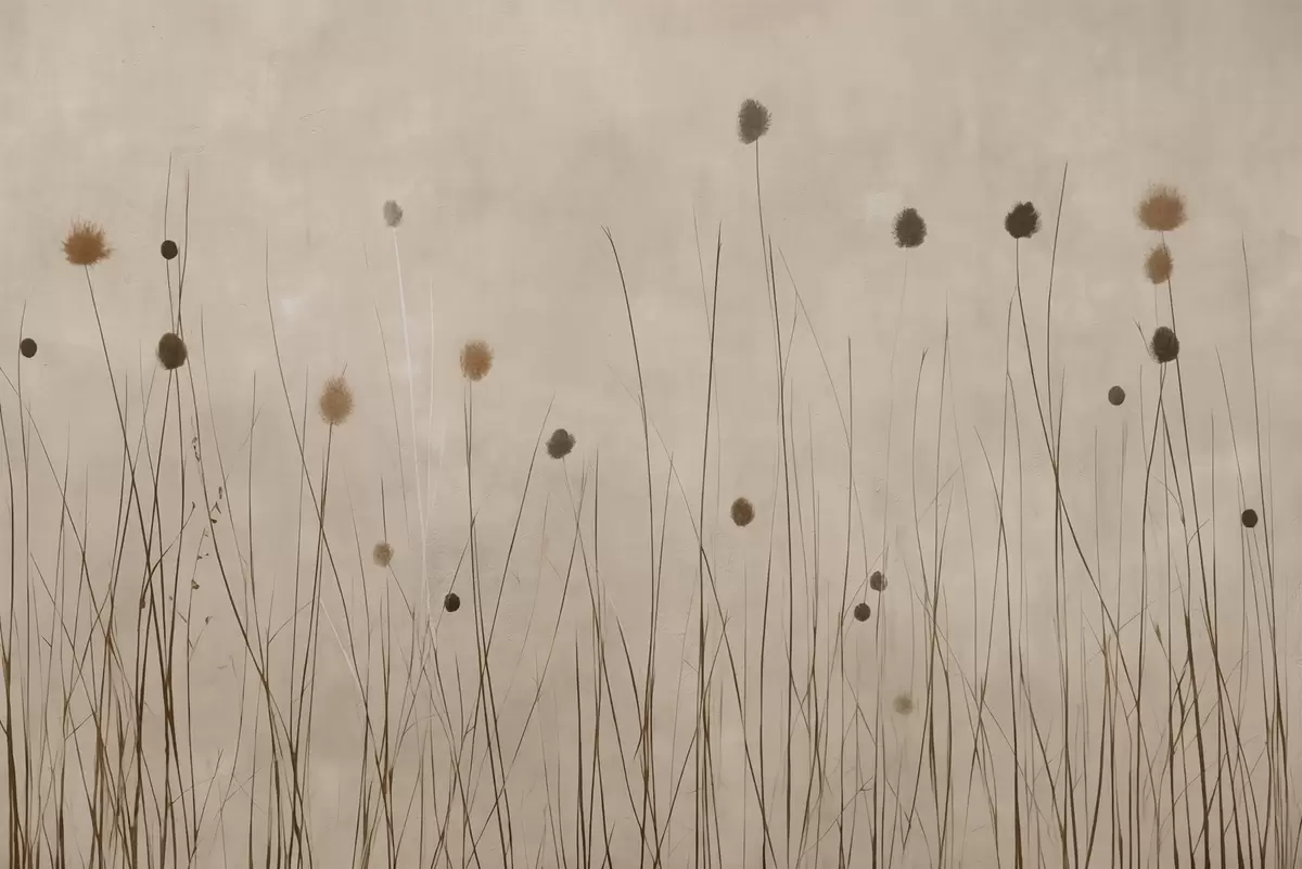 Фотошпалери Тонкі трави та пухнасті насіннєві головки на теплому бежевому тлі w04793