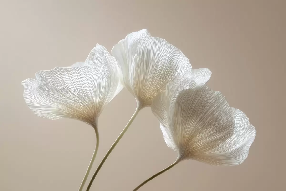Фотошпалери три ніжні квіти на бежевому тлі w04810