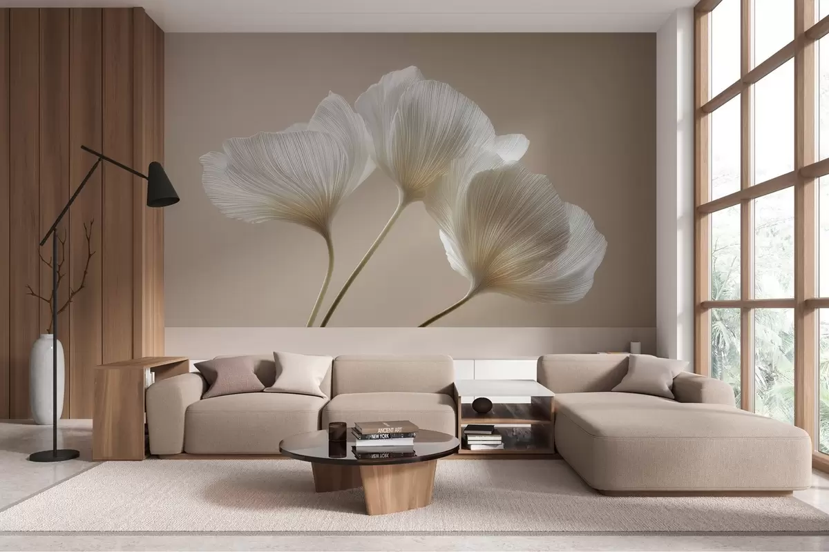 Фотошпалери три ніжні квіти на бежевому тлі w04810