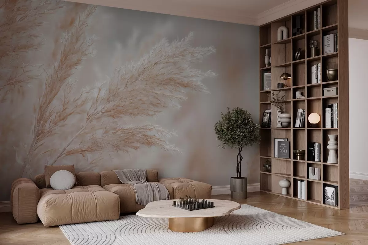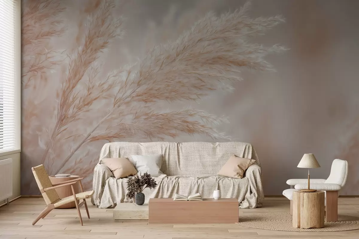Фотошпалери стилізовані великі очерети w04814