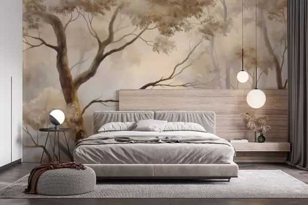Фотошпалери Ліс у легкому ранковому тумані. Ніжна атмосферна картина у стилі художнього пейзажу w04817