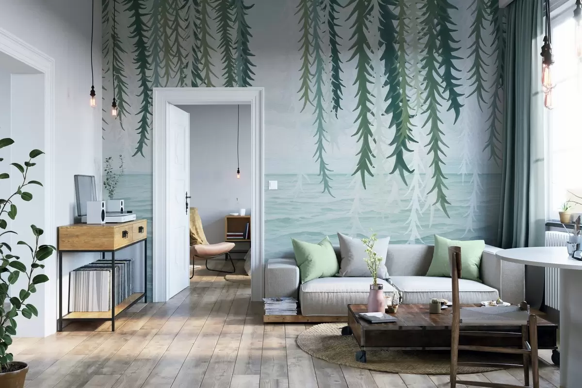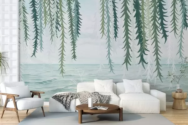 Фотошпалери Делікатні лози, що звисають над водою, в стилі акварелі w04830