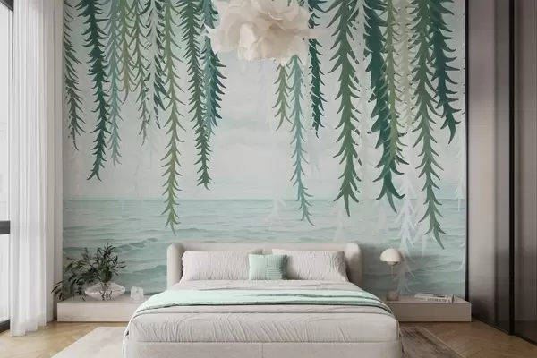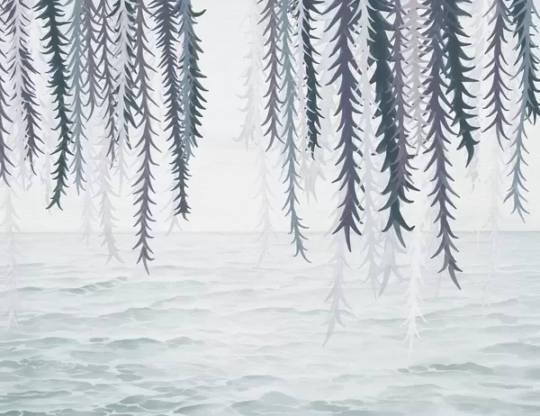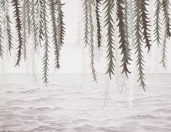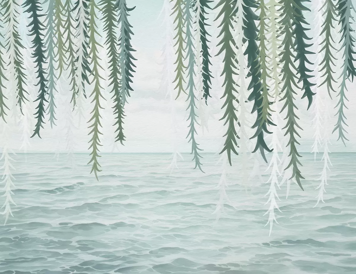 Фотошпалери Делікатні лози, що звисають над водою, в стилі акварелі w04830