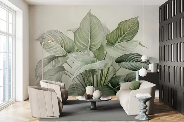 Фотошпалери Пишний кущ зеленого листя на стіні w04835