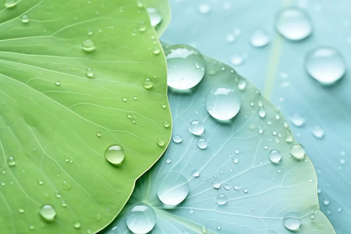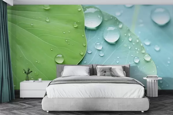 Фотошпалери Краплі води на листі, макроакварель w04838