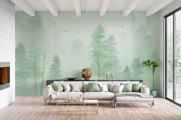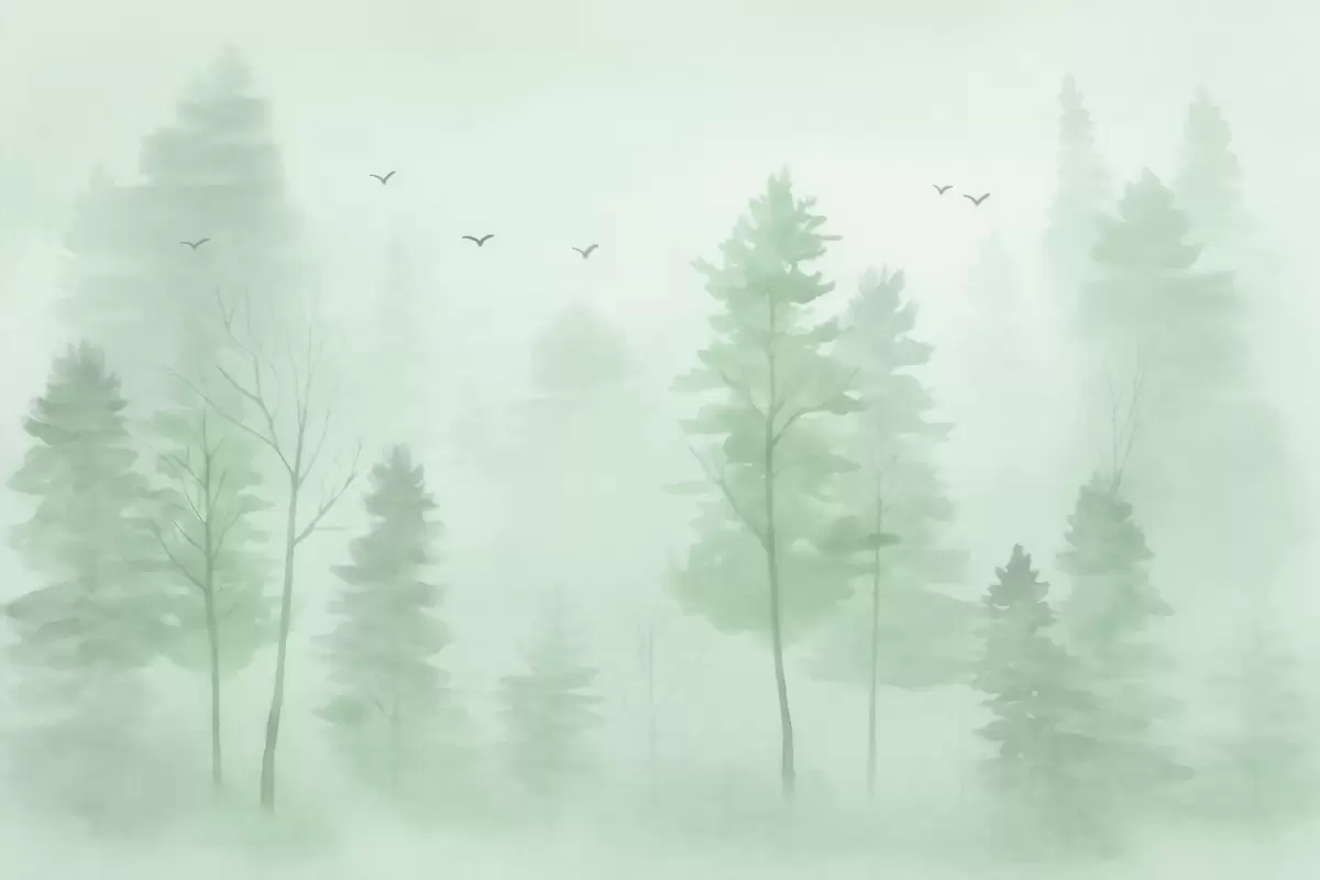 Фотошпалери ліс у зелених тонах, намальований у стилі акварелі w04872v1