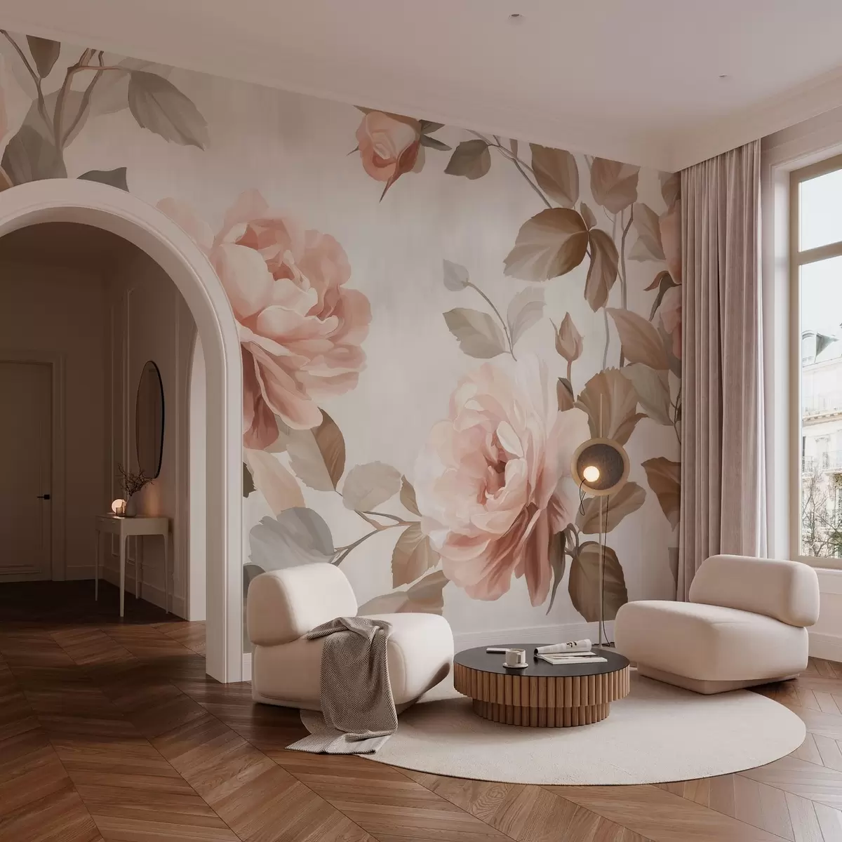 Фотошпалери мальовничі троянди в стилі олійного живопису w04873