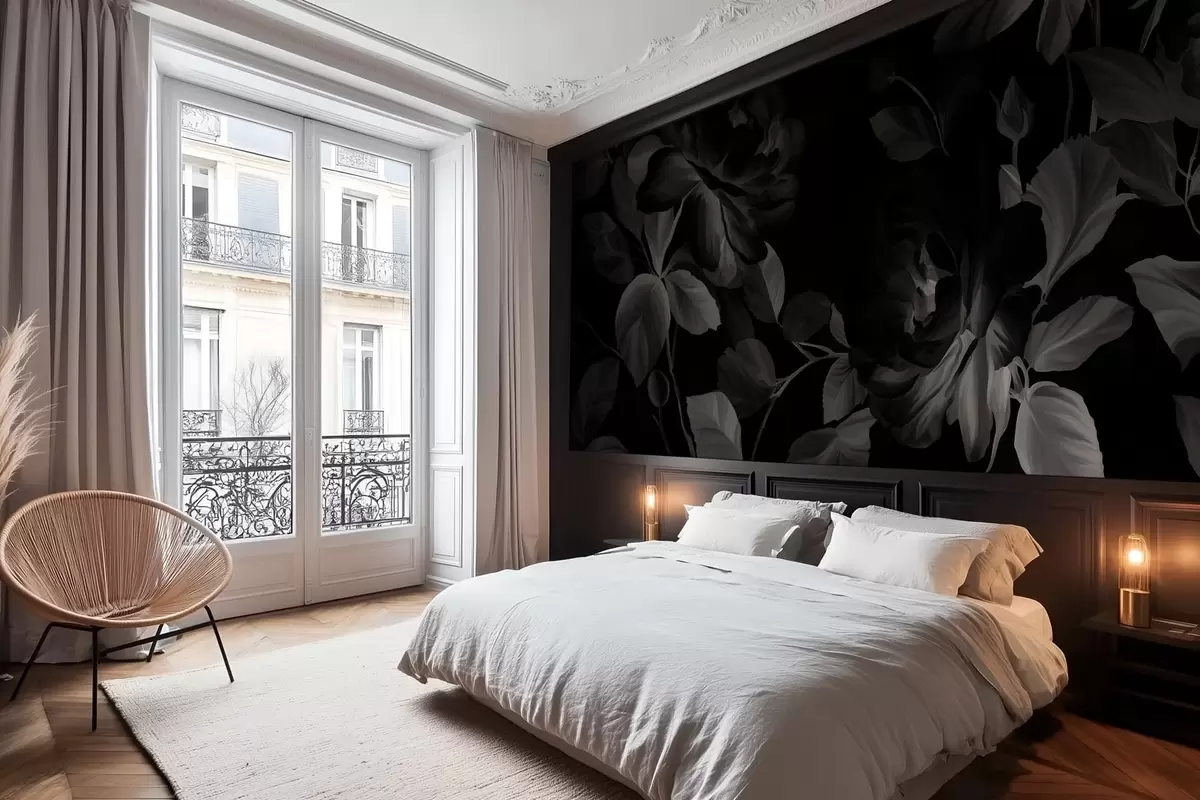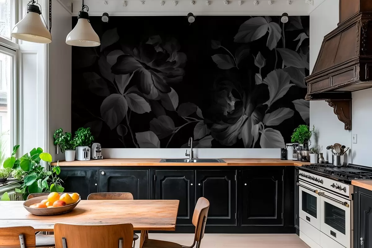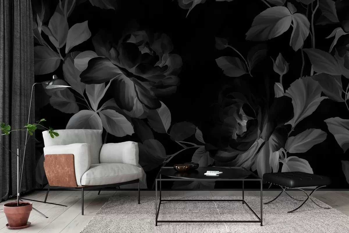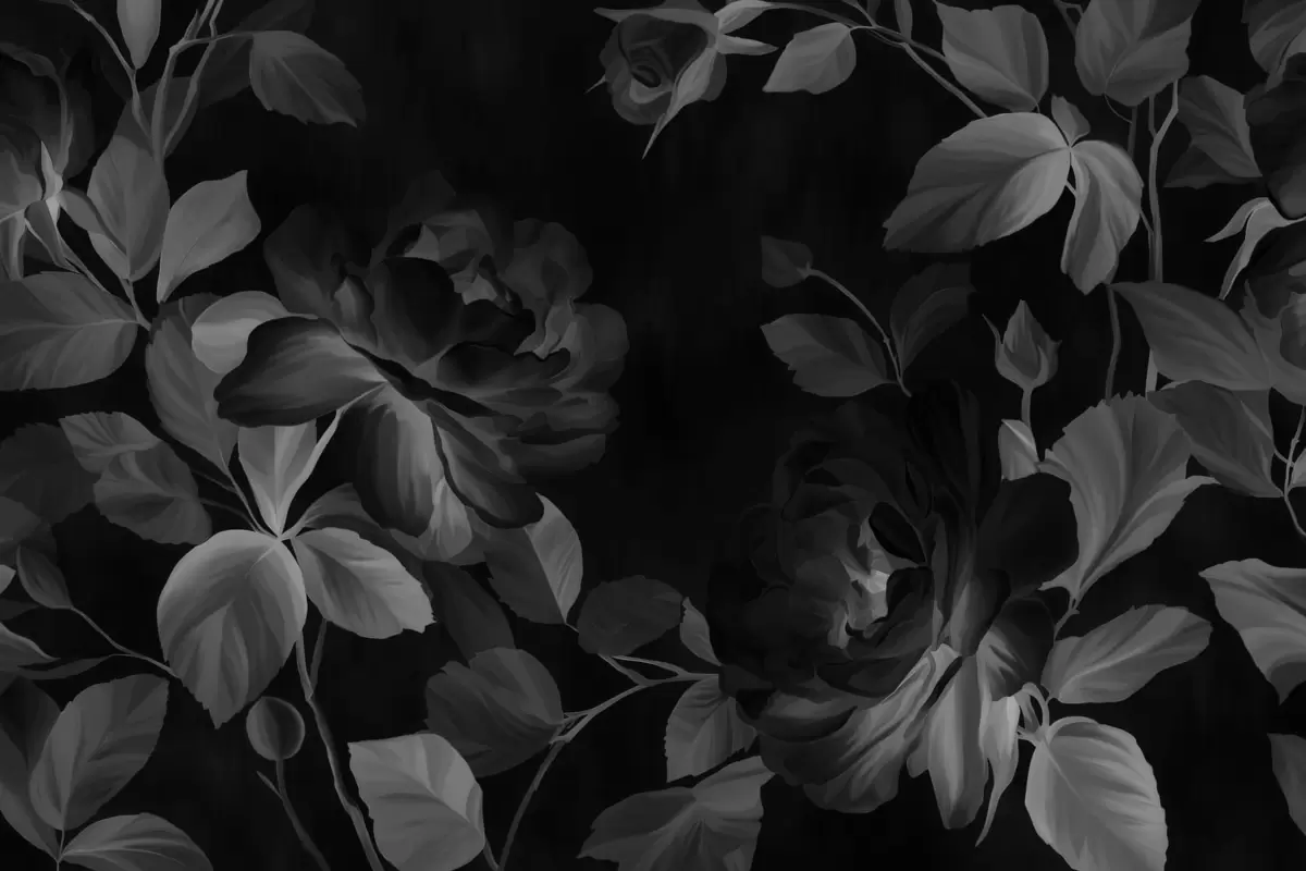 Фотошпалери чорно-білі мальовничі троянди в стилі олійного живопису w04873v1