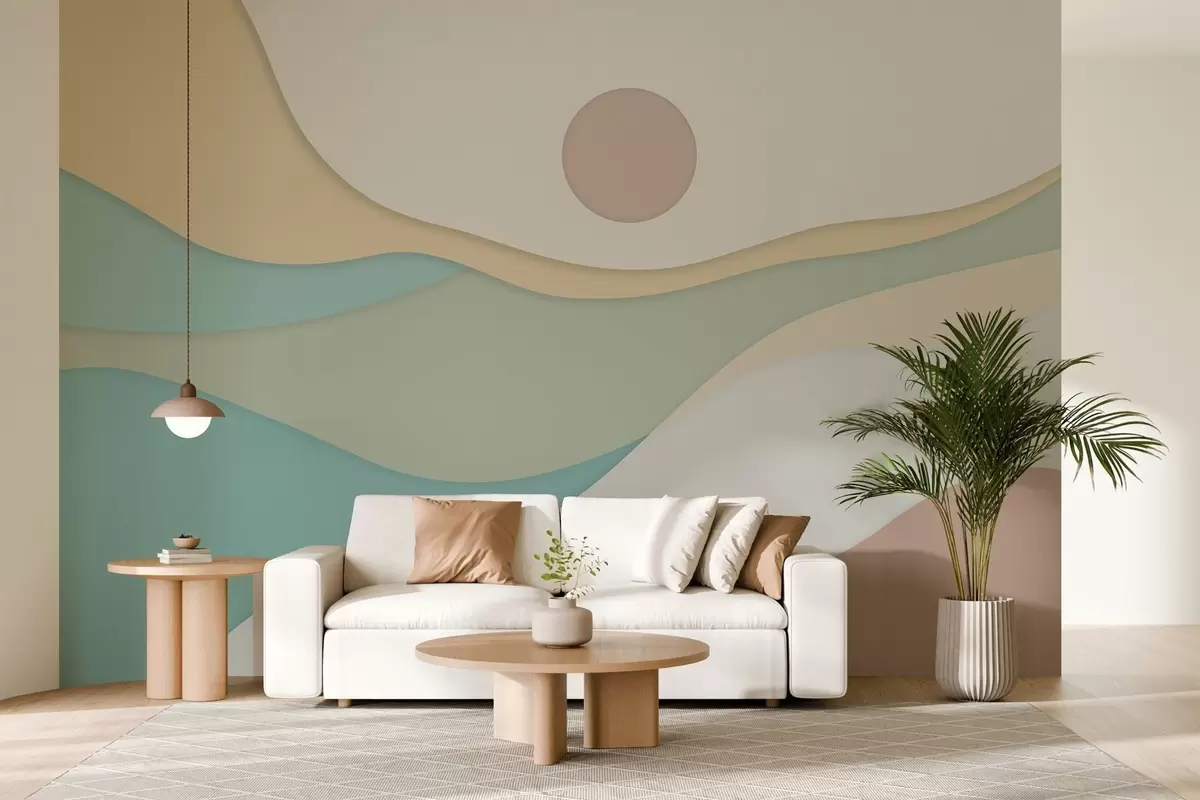 Фотошпалери Мінімалістична абстракція з м'якими, хвилеподібними формами, що нагадують плинний ландшафт і дюни. w04874