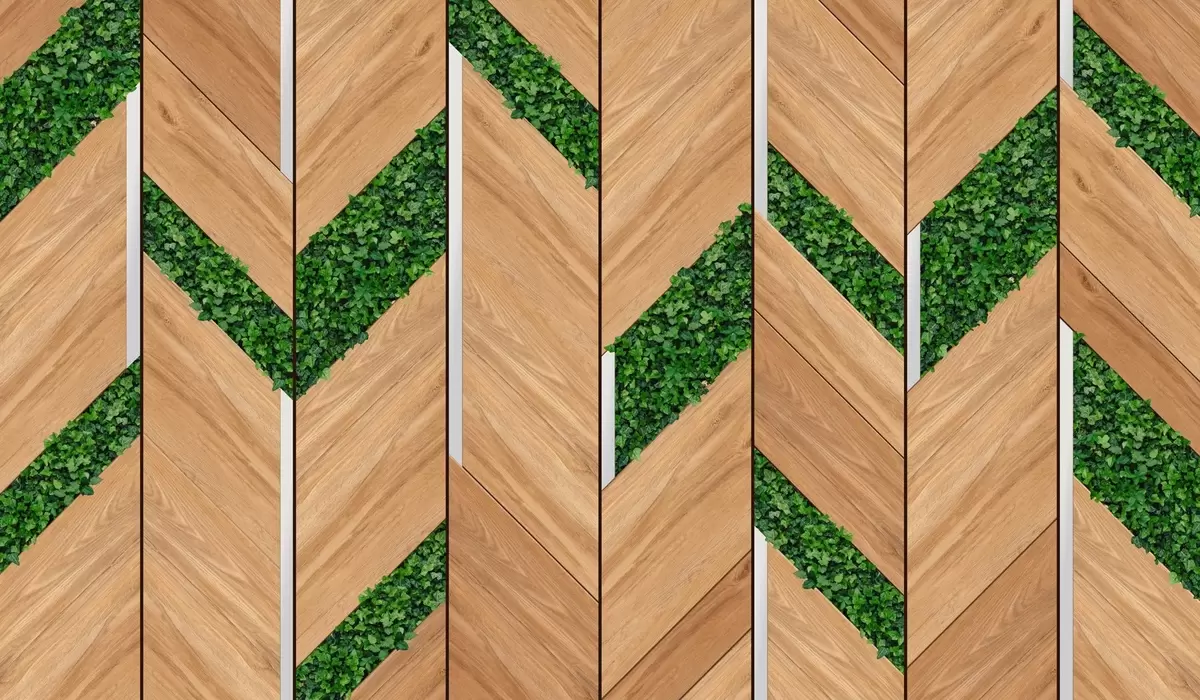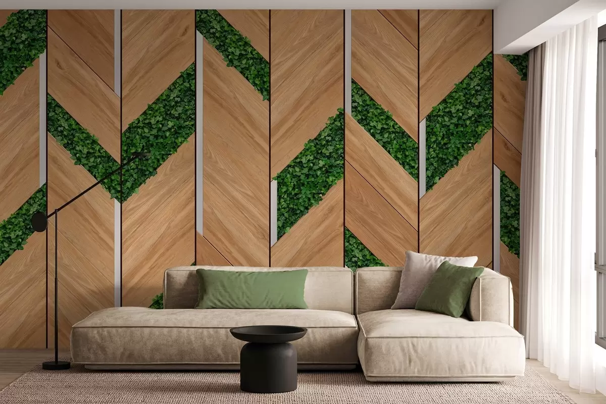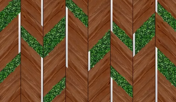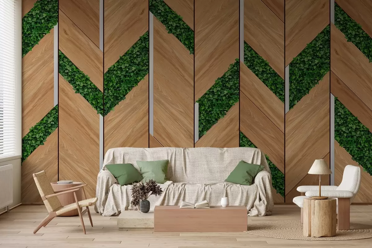 Фотошпалери імітація світлих дерев'яних панелей з рослинними вставками w04875