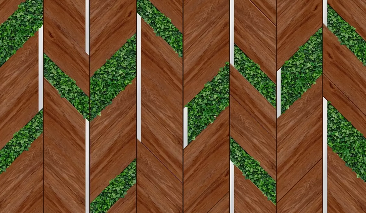 Фотошпалери імітація темних дерев'яних панелей з рослинними вставками w04875v1