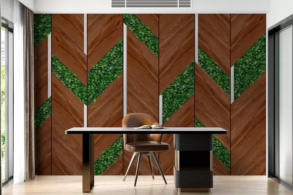 Фотошпалери імітація темних дерев'яних панелей з рослинними вставками w04875v1