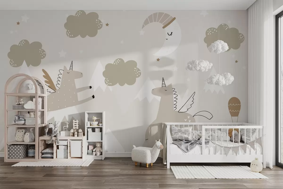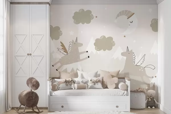 Фотошпалери Сплячий Місяць, єдинороги та повітряні кульки w04886