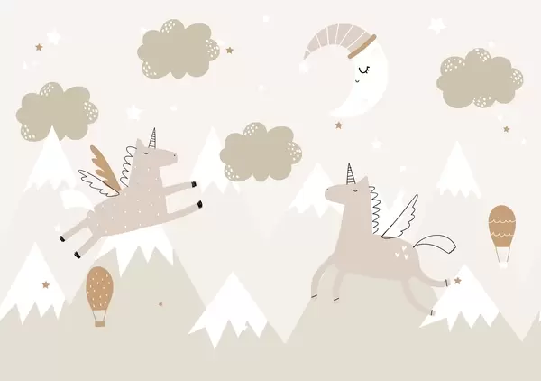 Фотошпалери Сплячий Місяць, єдинороги та повітряні кульки w04886