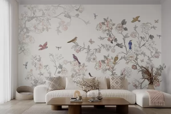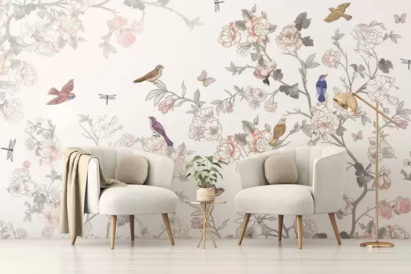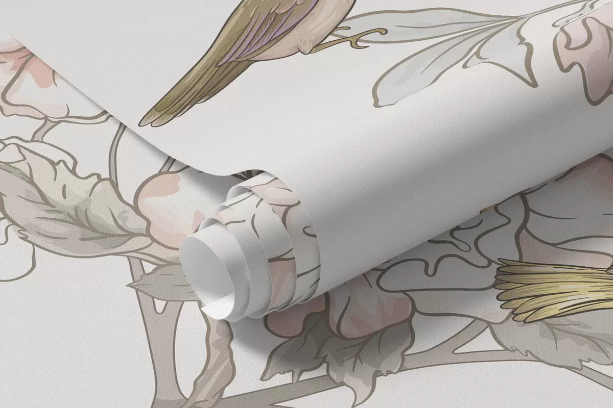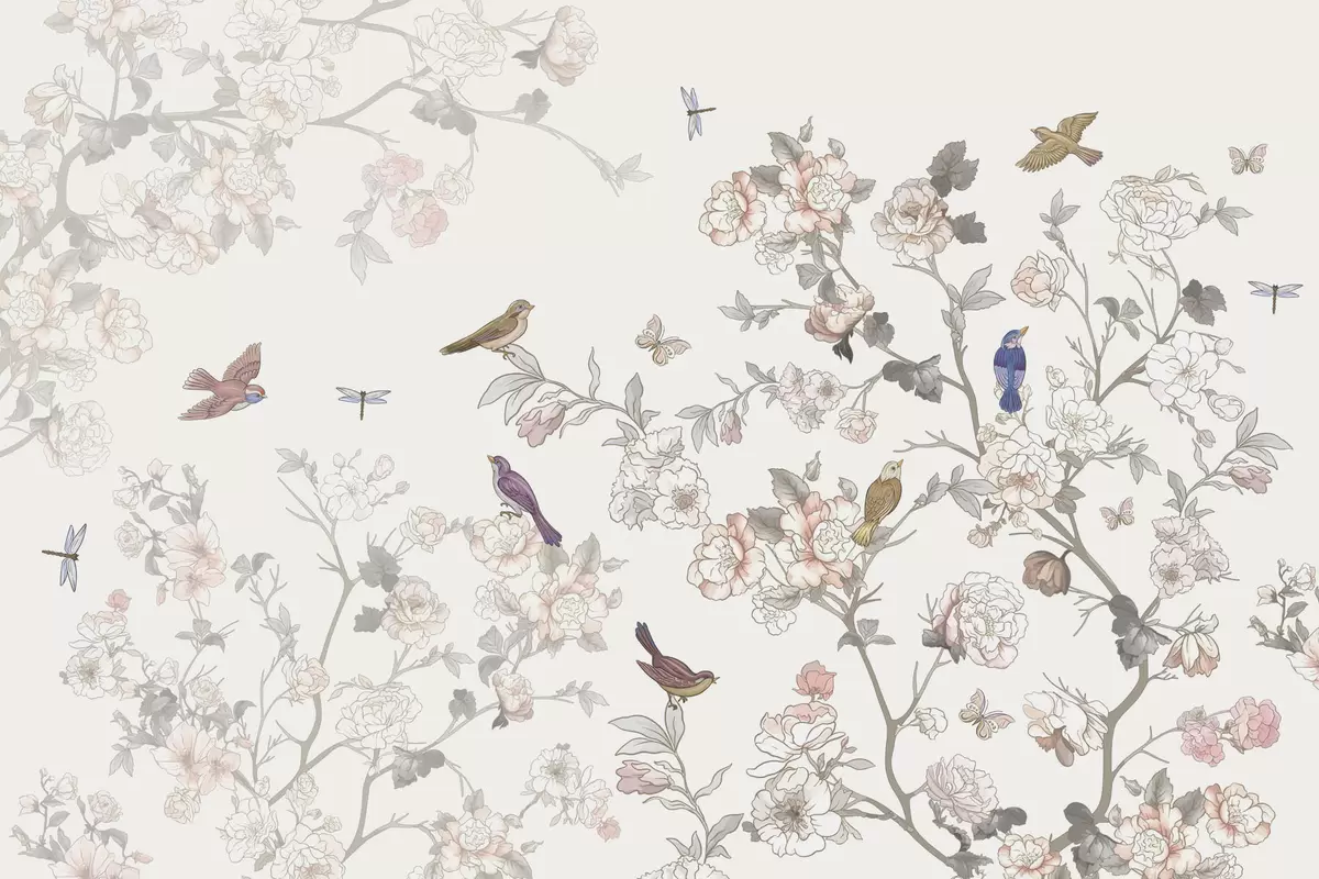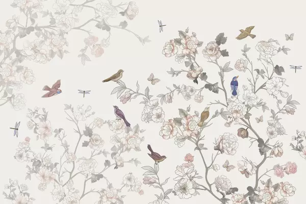 Фотошпалери Птахи біля гілок з квітами w04939