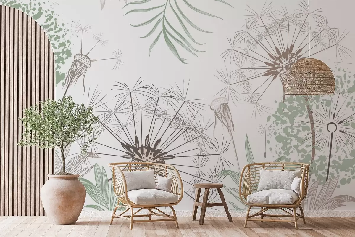 Фотошпалери Кульбаби серед листя w04942v1