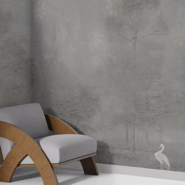 Фотошпалери Легкий туманний ліс з чаплею в прохолодних сірих тонах w04953v2