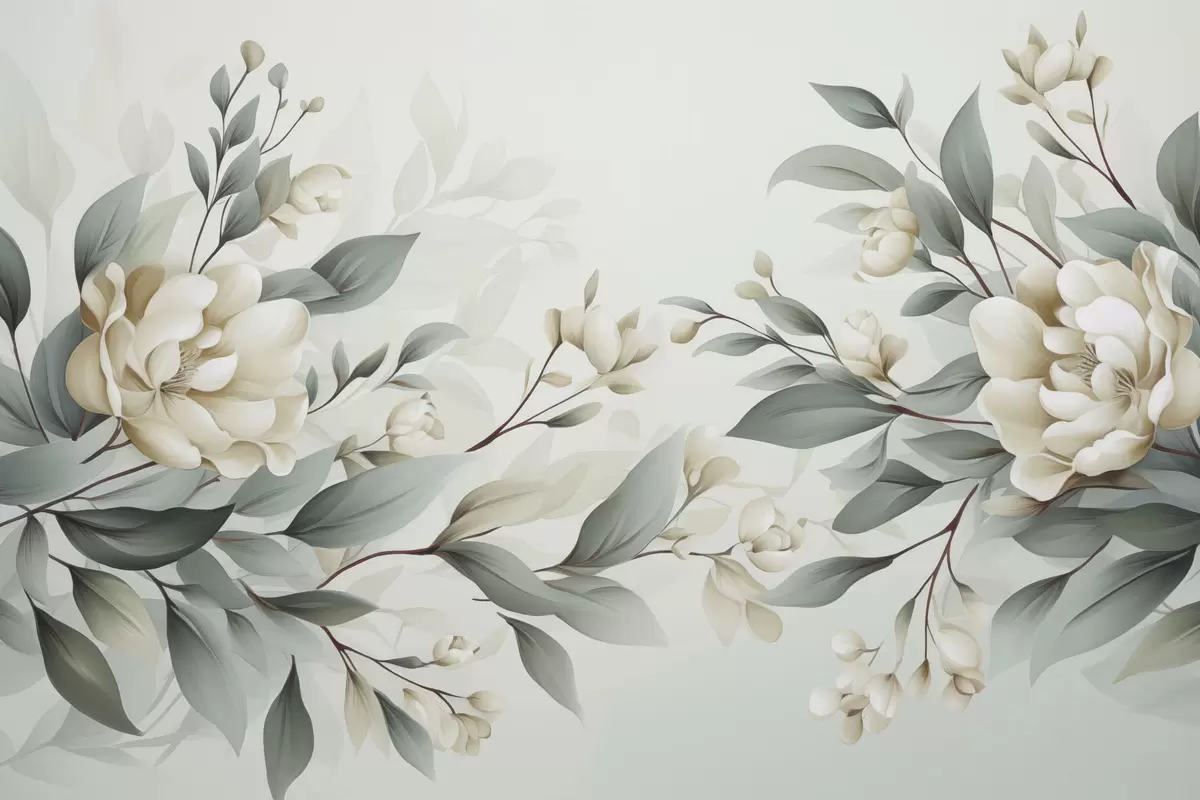 Фотошпалери Листя з квітами w04976