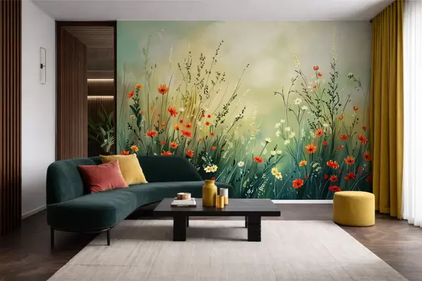 Фотошпалери Польові квіти та трави в м'якому живописному стилі w05015