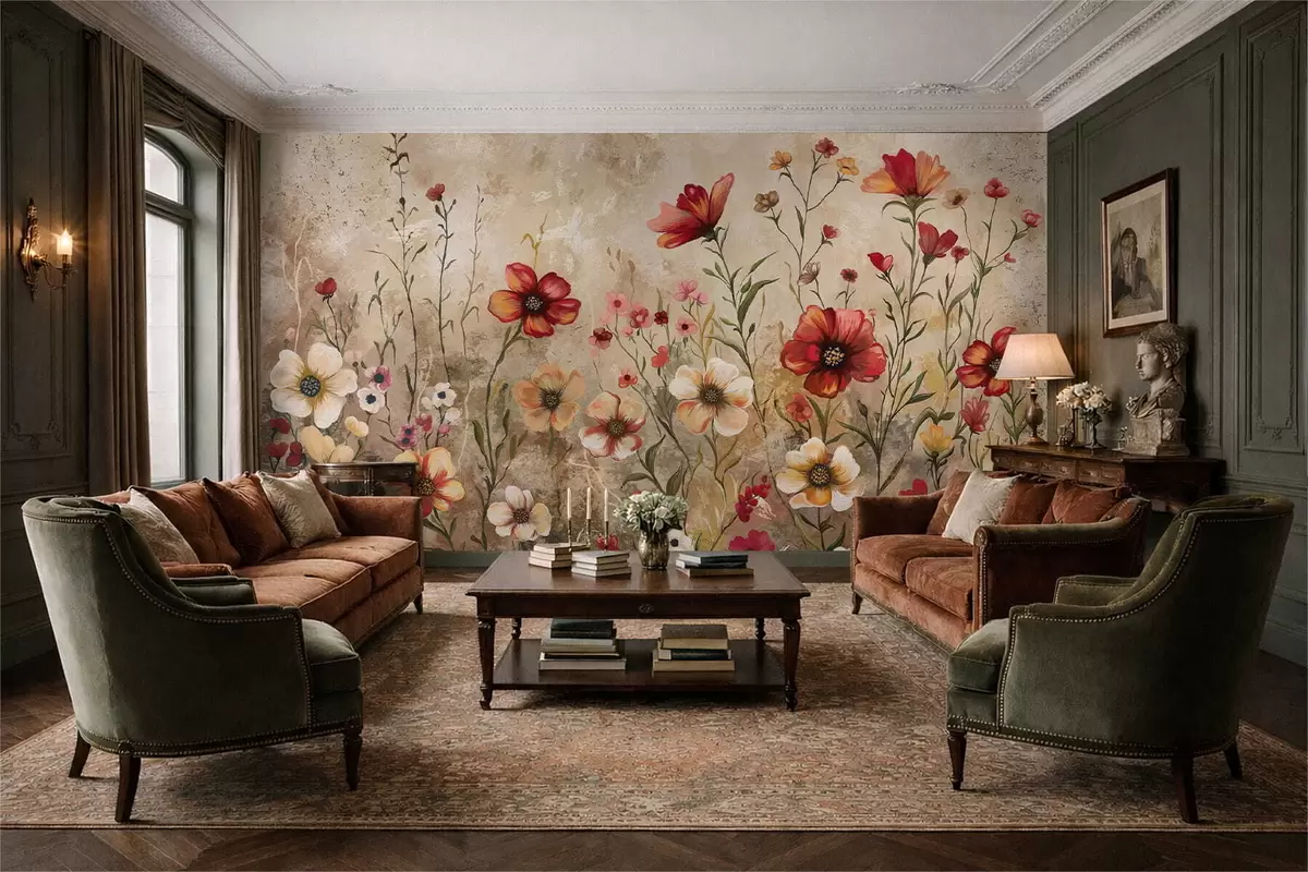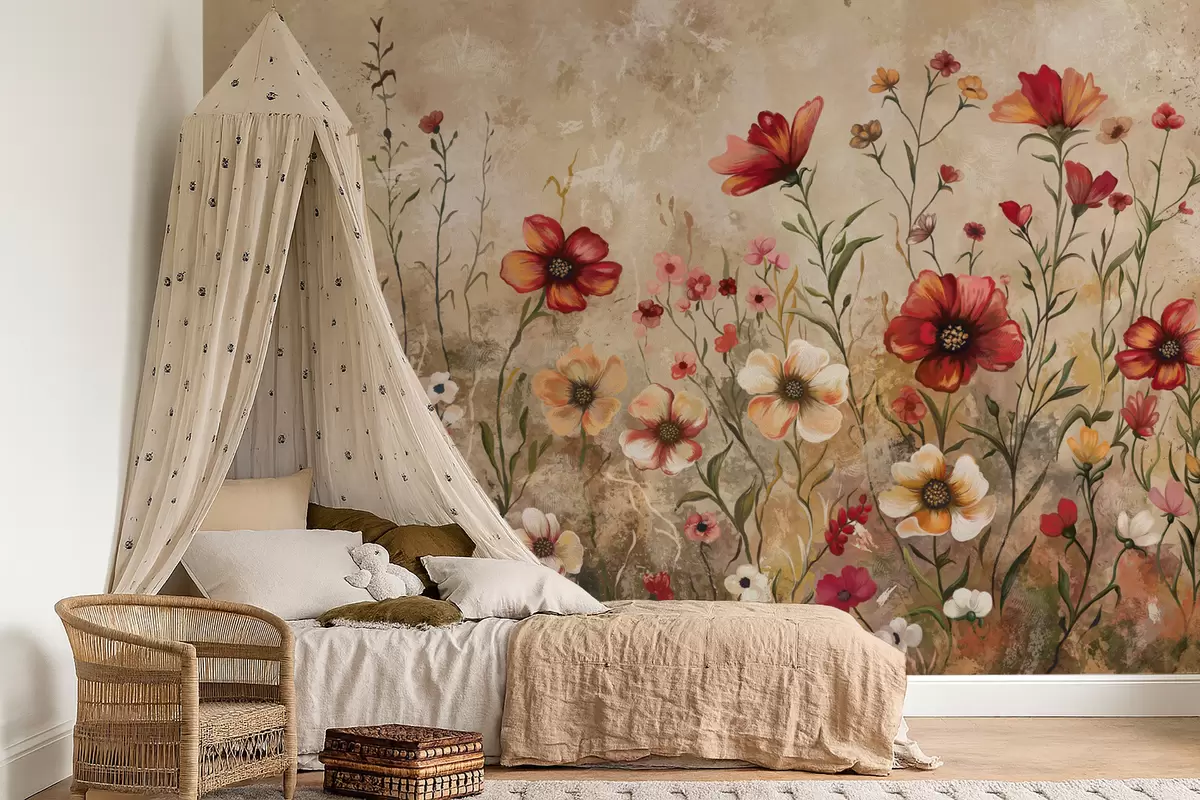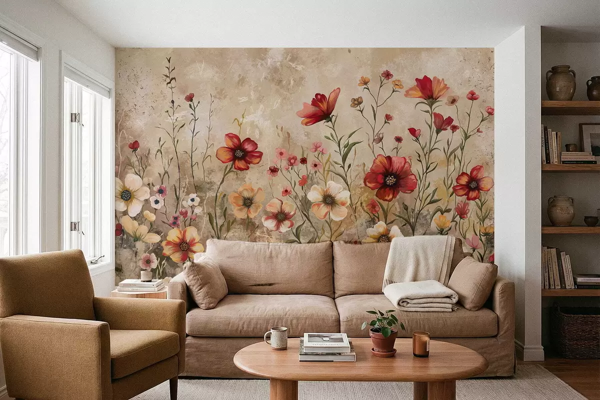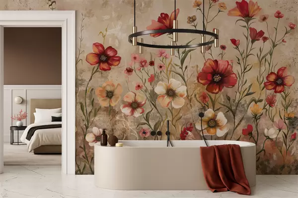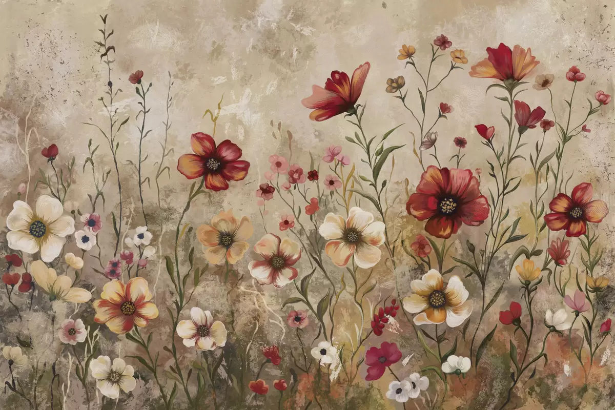 Фотошпалери Квіткова композиція на фактурному тлі в теплих тонах w05016